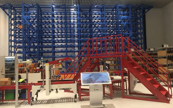 智能立體倉庫貨架通常是組合式鋼結(jié)構(gòu)的建筑物或結(jié)構(gòu)體,貨架內(nèi)是標(biāo)準(zhǔn)尺寸的貨位空間,巷道堆垛起重機(jī)是整個(gè)自動(dòng)化立體倉庫的核心設(shè)備,通過手動(dòng)操作,半自動(dòng)操作或全自動(dòng)操作,穿行于巷道之間的巷道中,出入庫口利用各種輸送機(jī)或AGV/RGV等自行運(yùn)動(dòng)小車對(duì)接巷道堆垛機(jī),實(shí)現(xiàn)把貨物從一處搬運(yùn)到另一處,完成存、取貨的工作。