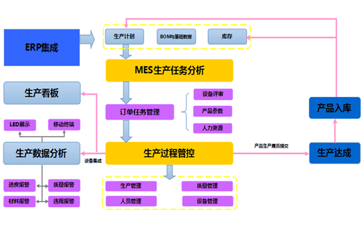 建立集成的生產(chǎn)制造執(zhí)行系統(tǒng)(MES),覆蓋對人、機(jī)、料、法、環(huán)、地理、產(chǎn)品等生產(chǎn)要素的管理,數(shù)據(jù)采集方面帶來質(zhì)的飛躍。