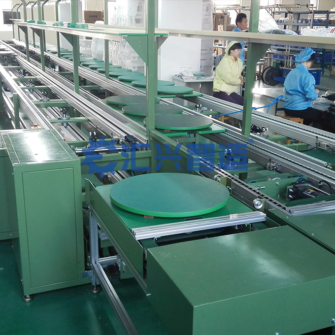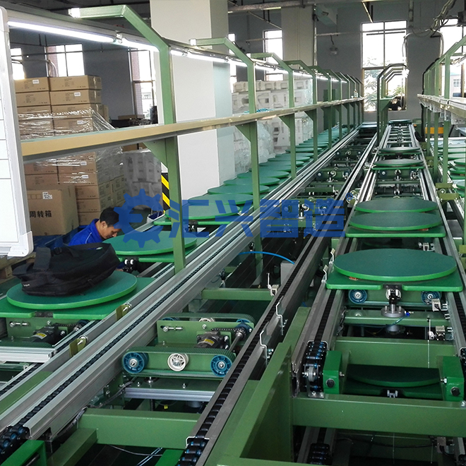POS機(jī)裝配線,是指工件以一定的速率連續(xù)、均勻地通過一系列裝配工作站,按照一定要求在各裝配工作站完成相應(yīng)裝配工作的生產(chǎn)線。匯興智造裝配線是人和機(jī)器的有效組合,最充分體現(xiàn)設(shè)備的靈活性,將輸送系統(tǒng)、隨行夾具和在線專機(jī)、檢測(cè)設(shè)備有機(jī)的組合,以滿足多品種產(chǎn)品的裝配要求。裝配流水線的傳輸方式有同步傳輸?shù)?(強(qiáng)制式)也可以是非同步傳輸/(柔性式),根據(jù)配置的選擇,實(shí)現(xiàn)手工裝配或半自動(dòng)裝配。裝配線在企業(yè)的批量生產(chǎn)中不可或缺。