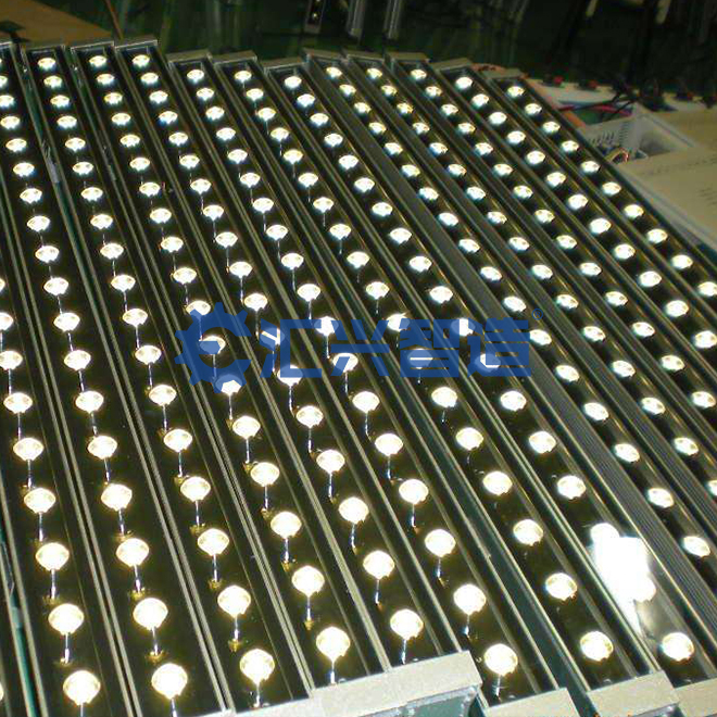 整燈裝配線主要是由輸送帶上料組裝和裝配機(jī)完成剪線、彎線、上鋁鉚釘、功率檢測、壓針、點膠、扣泡殼等工序,全線只需操作工人2名,半成品上料1名,可替代手工組裝6人的同等產(chǎn)能,工藝品質(zhì)穩(wěn)定。整線造價經(jīng)濟(jì)適用占地空間小,針對小批量的產(chǎn)品可選擇性使用部分自動化功能,整線留有自動化端口后續(xù)可升級如自動連接老化線。