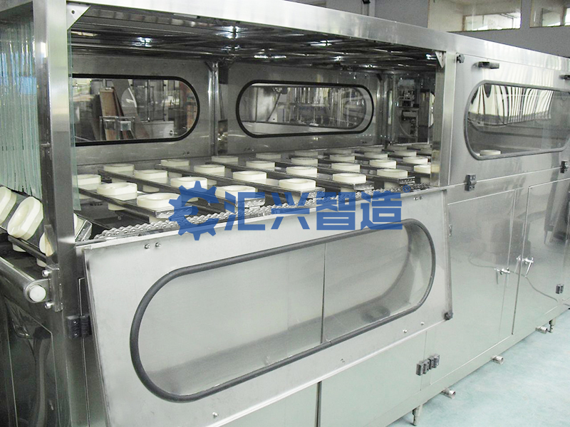 沖瓶機構整體由SUS304不銹鋼焊接、組裝而成。瓶夾采用整體式結構,每一只瓶夾都是由一整塊不銹鋼材料,經過加工中心加工而成。