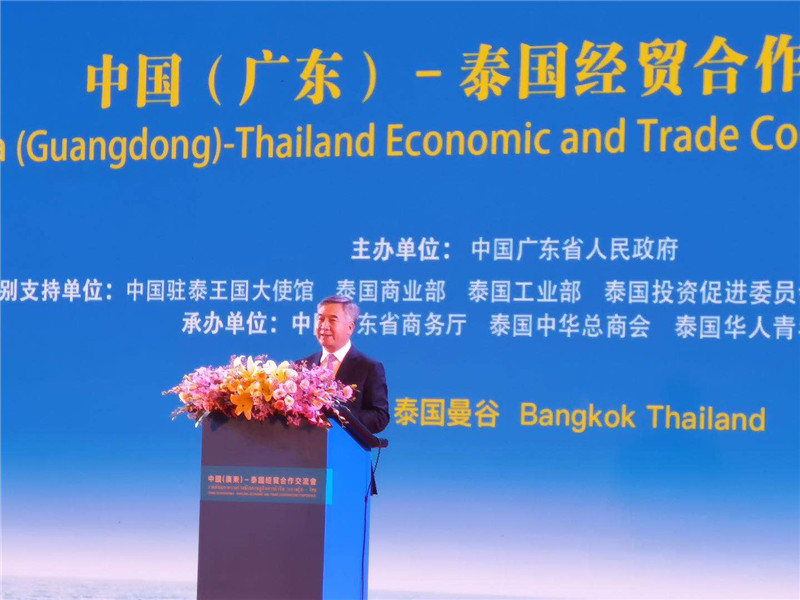交流會(huì)上進(jìn)行粵港澳大灣區(qū)與泰國(guó)合作發(fā)展研討暨廣東省企業(yè)未來(lái)發(fā)展計(jì)劃介紹,廣東省商務(wù)廳副廳長(zhǎng)陳越華先生作主持。廣東省發(fā)展與改革委員會(huì)主任、推進(jìn)粵港澳大灣區(qū)建設(shè)領(lǐng)導(dǎo)小組辦公室主任葛長(zhǎng)偉先生帶來(lái)《共享粵港澳大灣區(qū)發(fā)展新機(jī)遇、推動(dòng)廣東與泰國(guó)合作發(fā)展》的主題分享,珠海格力電器股份有限公司董事長(zhǎng)董明珠女士、科大訊飛科大訊飛股份有限公司高級(jí)副總裁杜蘭女士介紹企業(yè)未來(lái)在泰國(guó)合作發(fā)展及投資計(jì)劃。交流會(huì)還進(jìn)行《粵港澳大灣區(qū)建設(shè)背景下粵港與泰國(guó)合作發(fā)展機(jī)遇》研討沙龍環(huán)節(jié),與泰國(guó)政商界代表共同探討促進(jìn)廣東和泰國(guó)雙方的交流與合作。