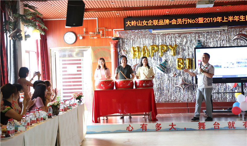 會議進(jìn)行過程中,大嶺山女企聯(lián)會長蔣秀梅、常務(wù)副會長陳艷芬、常務(wù)副會長兼秘書長毛陽平上臺共同敲響代表女企聯(lián)精神的士氣鼓,大家共同喊出女企聯(lián)的口號:匯愛,聚美,融智,將會議推向高潮。現(xiàn)場鼓聲震天,莊重震撼,向在場的女企業(yè)家們傳遞著催人奮進(jìn)、奮力拼搏的力量!