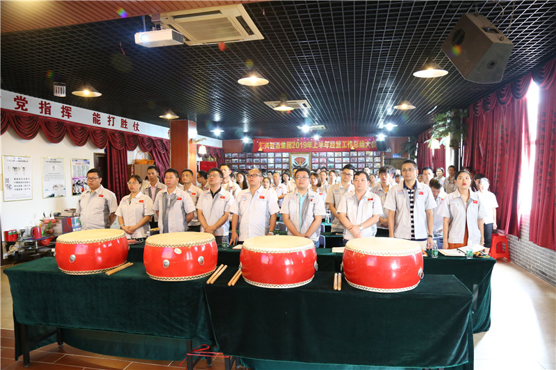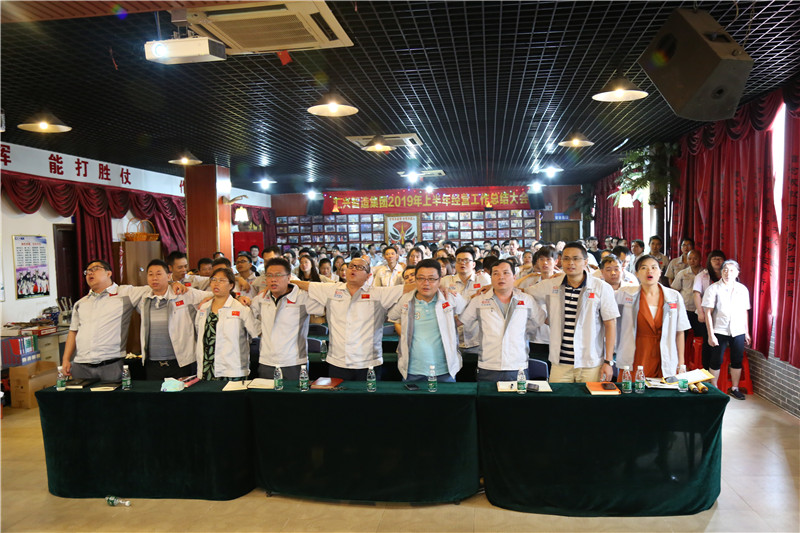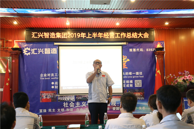 大會(huì)最后一項(xiàng)議程由董事長鐘輝作2019年上半年經(jīng)營工作總結(jié)以及2019下半年工作部署。鐘董圍繞公司的軟實(shí)力打造和硬實(shí)力建設(shè),要求全體干部和職工在下半年要以只爭朝夕的緊迫感和使命感,狠抓落實(shí)“258行動(dòng)計(jì)劃”?!緟R興智造258行動(dòng)計(jì)劃:2:堅(jiān)持企業(yè)硬實(shí)力和品牌軟實(shí)力兩個(gè)基本點(diǎn),堅(jiān)持設(shè)備智造和配件銷售兩條腿走路,堅(jiān)持國內(nèi)市場(chǎng)和國外市場(chǎng)兩只手發(fā)力;5:主動(dòng)做好個(gè)人的心態(tài)管理、目標(biāo)管理、時(shí)間管理、學(xué)習(xí)管理、行動(dòng)管理等五項(xiàng)管理;8:主動(dòng)發(fā)揚(yáng)“5+2”、“白+黑”的艱苦奮斗精神,每一位員工都要堅(jiān)守崗位,既要出工,也要出活,特別是領(lǐng)導(dǎo)干部要帶頭利用晚上1小時(shí)進(jìn)行學(xué)習(xí)和總結(jié),確保完成2019年集團(tuán)智能制造板塊2.58億元的經(jīng)營業(yè)績目標(biāo)!】