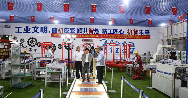 11月28日上午,東莞市委組織部組織三科科長麻挺松、大嶺山鎮(zhèn)組織人事辦主任黎國財一行蒞臨廣東匯興精工智造股份有限公司(以下簡稱:匯興智造)調研指導,參觀匯興智造黨建陣地、智能制造工業(yè)4.0體驗館、社會主義核心價值觀宣傳長廊等,指導匯興智造的黨建工作。公司董事長鐘輝、黨支部書記許光輝向市鎮(zhèn)領導匯報公司發(fā)展概況和黨建工作開展情況。公司副總經理郝聯(lián)根、董事會秘書柯火炎陪同座談。