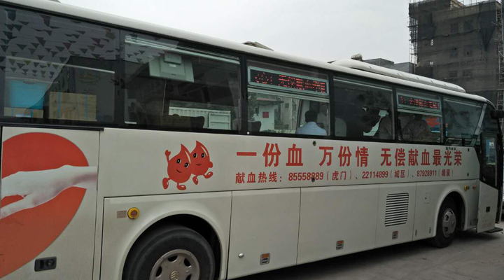 獻(xiàn)血車(chē)停在匯興智造大門(mén)口