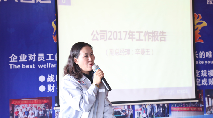 匯興智造副總經(jīng)理辛曼玉以一句“2017,您幸福嗎?”開啟大會(huì)的第六項(xiàng)議程,作2017年年度工作報(bào)告。辛副總說:“在2017年,匯興智造實(shí)現(xiàn)了16年來都沒有實(shí)現(xiàn)的銷售業(yè)績(jī);成立了研究院、技術(shù)研究中心等研發(fā)機(jī)構(gòu),公司的研發(fā)能力得到提高;調(diào)整了產(chǎn)品結(jié)構(gòu),拓展了行業(yè)范圍,并且守護(hù)住了傳統(tǒng)行業(yè),夯實(shí)了業(yè)績(jī);實(shí)現(xiàn)了配件事業(yè)的業(yè)績(jī)倍增,取得喜人成績(jī);加強(qiáng)了人力資源建設(shè),老員工在進(jìn)步,能力在提升,而高學(xué)歷、高層次員工的加盟,讓匯興智造如虎添翼。這一年,雖然我們經(jīng)歷了困難、挫折,但取得的成績(jī)是驕人的。匯興智造在往前走,往上走,我們?cè)谏掀碌倪^程中,會(huì)氣喘,會(huì)腿酸,很累,但當(dāng)我們爬上山頂?shù)臅r(shí)候,那種‘會(huì)當(dāng)凌絕頂,一覽眾山小’的豪情和喜悅卻是無法比擬的。所以,如果有人問:2017,您幸福嗎?我會(huì)回答:我很幸福!”
