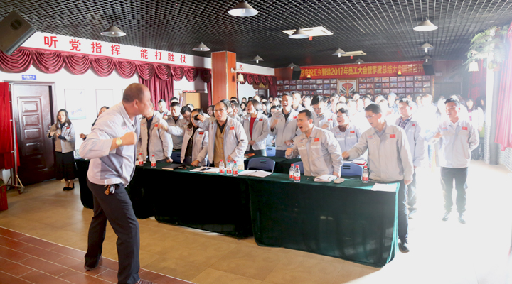 “為夢(mèng)想沖刺,我是匯興智造的一名忠誠(chéng)戰(zhàn)士,殺!殺!殺!”,震天喊聲響徹會(huì)場(chǎng),匯興人殺掉困惑,殺掉不妥,殺掉阻礙,挺胸抬頭,勇往直前?!靶坳P(guān)漫道真如鐵,而今邁步從頭越”,2017已不可追,2018正等著匯興智造再創(chuàng)佳績(jī)。