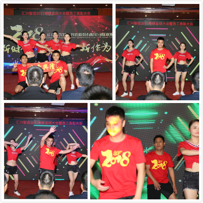 2018年1月27日19:00,隨著一聲“開(kāi)門(mén)紅”,匯興智造將走進(jìn)一個(gè)新時(shí)代,踏上一段新征程,展現(xiàn)一番新作為。舞蹈《開(kāi)門(mén)紅》拉開(kāi)了匯興智造年會(huì)頒獎(jiǎng)盛典暨迎春聯(lián)歡晚會(huì)的序幕。紅衣紅帕紅絲帶隨著音樂(lè)跳躍,宛若一簇簇燃燒的火焰,點(diǎn)燃了紅火的希望和2018的鴻運(yùn)。