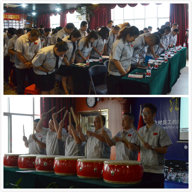 會議由配件事業(yè)部副總監(jiān)楊思主持。會議在激昂的《匯興之歌——用心智造世界》拉開帷幕,全體參會人員向企業(yè)“孝道、商道、人道”行三鞠躬禮,宣讀企業(yè)愿景——成為中國領(lǐng)先的整廠自動化系統(tǒng)解決方案提供商,企業(yè)使命——做受尊敬的好人、造受尊敬的產(chǎn)品、辦受尊敬的企業(yè)、建受尊敬的平臺,企業(yè)精神——用情做人、用心做事,團隊精神——忠誠團結(jié)、勤奮進取。隨后,匯興智造董事長鐘輝帶領(lǐng)子公司、分公司、辦事處領(lǐng)導共同敲響士氣鼓,鼓舞匯興智造牢記初心,砥礪前行。