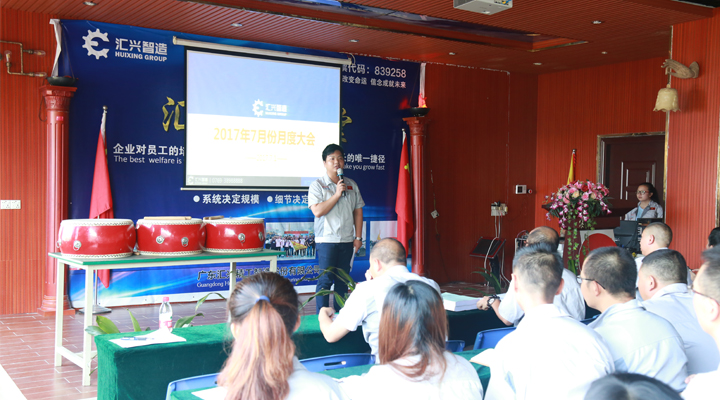光陰似箭,轉(zhuǎn)眼間,2017年上半年已經(jīng)過(guò)去了。在2017年7月1日這個(gè)有著諸多紀(jì)念意義的日子里,廣東匯興精工智造股份有限公司(股票代碼:839258)月度大會(huì)在東莞總部勝利召開(kāi),匯興智造董事長(zhǎng)鐘輝及公司全體員工精神抖擻、斗志昂揚(yáng)地參加了此次會(huì)議。大會(huì)在催人奮進(jìn)的匯興之歌中拉開(kāi)了帷幕,人資行政部經(jīng)理袁侃主持本次會(huì)議。