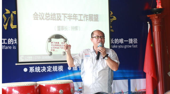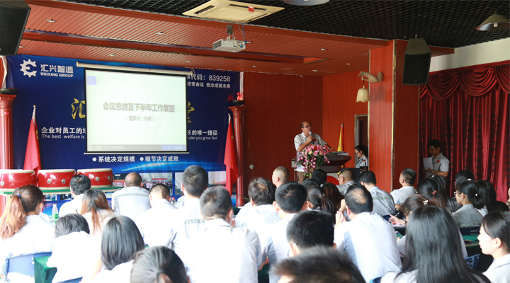 最后,由鐘輝董事長(zhǎng)作會(huì)議總結(jié)及下半年的工作展望。回首上半年,經(jīng)過(guò)全體匯興人的共同努力,匯興智造的業(yè)績(jī)趕超去年一年,并再次交出了亮眼的成績(jī)單,以“優(yōu)等生”的身份成功晉級(jí)到新三板的創(chuàng)新層,這對(duì)公司未來(lái)的發(fā)展,特別是沖刺更高的資本巿場(chǎng)有著重要而深遠(yuǎn)的意義。作為植根于大嶺山的本土民營(yíng)企業(yè),十七年來(lái)勤勤勉勉,絲毫不曾懈怠,也感恩大嶺山鎮(zhèn)這片熱土和好的營(yíng)商環(huán)境,眾多領(lǐng)導(dǎo)干部、學(xué)者專(zhuān)家多次蒞臨匯興智造參觀調(diào)研和指導(dǎo),給匯興智造的發(fā)展建言獻(xiàn)策,增光添彩。匯興智造作為大嶺山鎮(zhèn)市級(jí)“倍增計(jì)劃”試點(diǎn)企業(yè),也是東莞市知識(shí)產(chǎn)權(quán)重點(diǎn)保護(hù)企業(yè),新近又被獲評(píng)為“2016年度廣東省守合同重信用單位”。今年五月份,企業(yè)倍增辦順勢(shì)成立,匯興智造力爭(zhēng)在兩年內(nèi),狠抓業(yè)績(jī),推動(dòng)企業(yè)實(shí)現(xiàn)規(guī)模倍增、效益倍增、納稅倍增,一切以結(jié)果為導(dǎo)向,所有匯興人定以鐵一般的信仰,鐵一般的信念,鐵一般的紀(jì)律,鐵一般的擔(dān)當(dāng)、朝著既定的目標(biāo)奮勇前進(jìn)。