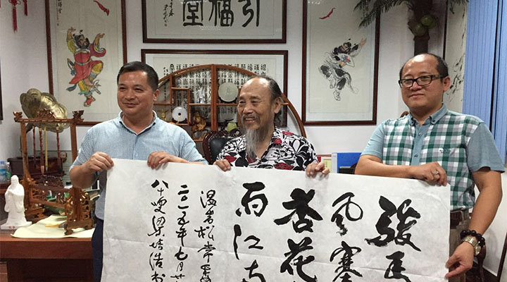 7月28日晚22點(diǎn),興國(guó)縣委常委副縣長(zhǎng)溫巖松,方太鄉(xiāng)黨委書(shū)記江華,水利局局長(zhǎng)王捷等一行七人蒞臨我司指導(dǎo),秋風(fēng)塞上比擬著溫副縣長(zhǎng)的遠(yuǎn)程走訪,像春雨滋養(yǎng)著大地,匯利興集團(tuán)(現(xiàn)更名:廣東匯興精工智造股份有限公司,簡(jiǎn)稱:匯興智造)董事長(zhǎng)鐘輝陪同,邂逅到訪的嶺南畫(huà)派泰斗梁培浩教授,并與梁老進(jìn)行深刻的藝術(shù)交流。
