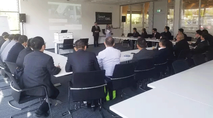 第五天,考察團(tuán)來(lái)到弗勞恩霍夫協(xié)會(huì)參觀及講座。弗勞恩霍夫協(xié)會(huì)是德國(guó)也是歐洲最大的應(yīng)用科學(xué)研究機(jī)構(gòu)。在工業(yè)4.0變革中,弗勞恩霍夫協(xié)會(huì)不僅僅是倡導(dǎo)者,各研究所還是重要參與者,為工業(yè)4.0企業(yè)提供專業(yè)支持。它位于德國(guó)萊姆戈(Lemgo)的Fraunhofer IOSB INA(弗勞恩霍夫工業(yè)自動(dòng)化應(yīng)用中心),由工程師和計(jì)算機(jī)科學(xué)家組成的跨學(xué)科隊(duì)伍通過(guò)應(yīng)用信息技術(shù),共同努力解決工業(yè)自動(dòng)化系統(tǒng)領(lǐng)域的開(kāi)放課題。