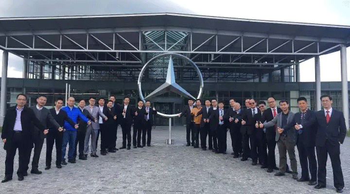 當(dāng)天下午,考察團(tuán)去到了梅賽德斯奔馳(Mercedes-Benz)汽車工廠。梅賽德斯奔馳在汽車界的地位就好比電影界的好萊塢,它是世界上最大的豪華轎車生產(chǎn)基地,目前共有員工31000多人,其中技術(shù)中心就有8000多名工程師與設(shè)計(jì)師。本次主要考察參觀機(jī)器人自動(dòng)化s級(jí)生產(chǎn)線。(由于生產(chǎn)線禁止拍照,因此照片有限,下附合照一張)