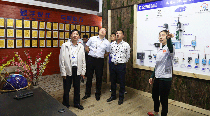 2017年 4月25日,江西國興實業(yè)集團有限公司董事長李虞財一行蒞臨廣東匯興精工智造股份有限公司(股票代碼:839258)參觀考察。匯興智造順德分公司總經理鐘元華、董事長特助柯火炎代表全體員工對李董一行的到來表示熱烈歡迎,并全程陪同參觀了匯興智造企業(yè)文化及工業(yè)4.0智能裝備體驗館,并就空調智能生產線、LED老化測試線等項目進行了深入探討。