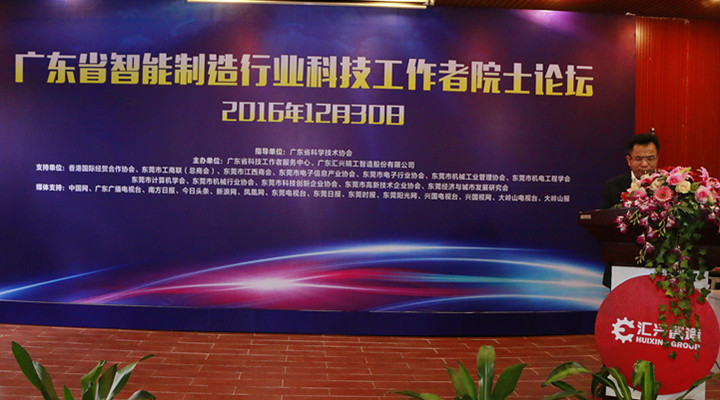 2016年12月30日上午,由廣東省科學技術協會指導、廣東省科技工作者服務中心和廣東匯興精工智造股份有限公司(股票代碼:839258)共同舉辦的“廣東省智能制造行業(yè)科技工作者院士論壇”在匯興智造東莞總部隆重舉行。中國工程院院士孫玉、廣東省科學技術協會副主席馮日光、廣東省科技工作者服務中心主任廖仕明、東莞市科學技術協會副主席許為豪、東莞市大嶺山鎮(zhèn)副鎮(zhèn)長蔡容穩(wěn)、東莞職業(yè)技術學院計算機系主任胡選子、江西理工大學機電工程學院書記劉政、副院長劉祚時、東莞理工學院原副書記王江水、東莞理工學院原副校長鄒小平、江西省興國縣委常委李明海、武警126師原政委趙燕清、意大利智能制造工程中心顧問高級工程師艾德羅教授、匯興智造董事長鐘輝、東莞職業(yè)技術學院副教授辛曼玉,以及來自全國各地的優(yōu)秀的智能制造行業(yè)代表200多人參加了論壇。