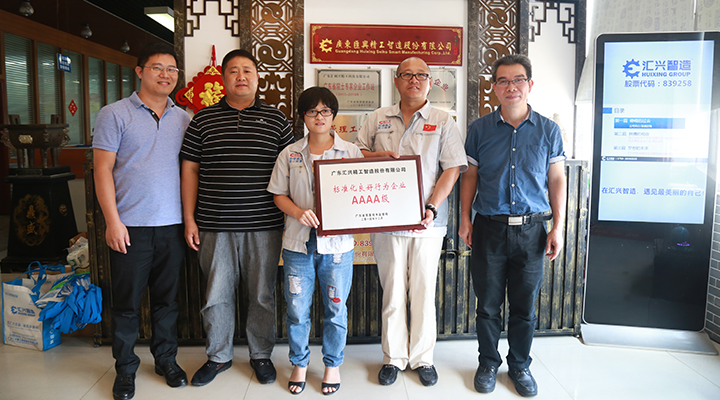 2017年8月30日,經(jīng)廣東省質(zhì)量技術(shù)監(jiān)督局、省標(biāo)準(zhǔn)化協(xié)會專家組的現(xiàn)場評審,廣東匯興精工智造股份有限公司(股票代碼:839258)再度獲評為“AAAA級標(biāo)準(zhǔn)化良好行為企業(yè)”及《機(jī)械安全 安全設(shè)計與精益制造指南》國家標(biāo)準(zhǔn)起草單位,在行業(yè)中到示范引領(lǐng)作用。