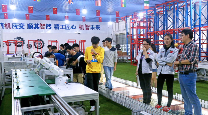 在工業(yè)4.0體驗(yàn)館,同學(xué)們圍著設(shè)備展開了熱烈的討論。唐教授看著興致勃勃的學(xué)生,欣慰地感嘆道:“非常感謝匯興給我們提供了這么一個(gè)機(jī)會(huì),讓同學(xué)們能夠理論聯(lián)系實(shí)際,感知到在學(xué)校學(xué)習(xí)的知識(shí)是可以轉(zhuǎn)化為生產(chǎn)力的?!?/p>