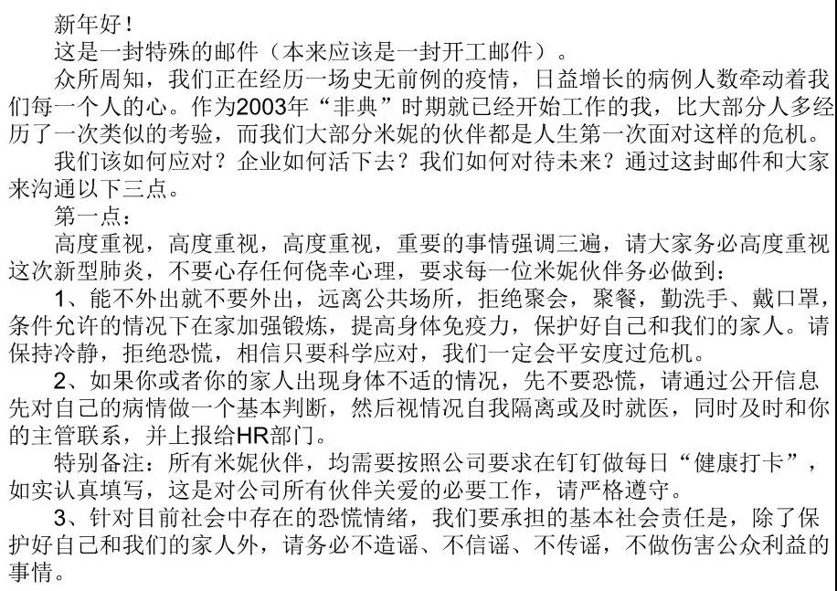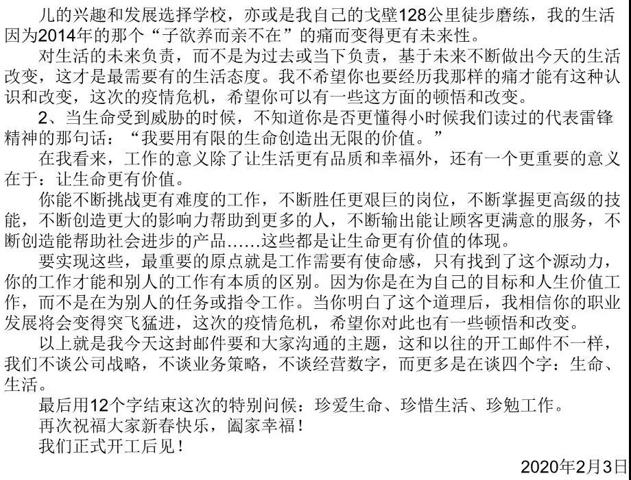 生命重于泰山!疫情就是命令!防控就是責(zé)任!愿肺炎疫情早日得到控制,山河無(wú)恙,天地皆安。面對(duì)疫情,政府也提倡“停課不停教,停校不停學(xué)”,今天初十是集團(tuán)原定計(jì)劃的開(kāi)工日,同理企業(yè)也應(yīng)提倡“停工不停業(yè)務(wù)”。我們隔離病毒,絕不去隔離愛(ài),也絕不是隔離業(yè)務(wù)。